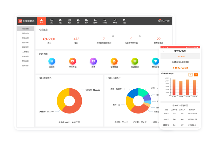 • 我們從2016年開始使用“幫你教”,在排課、財(cái)務(wù)、家校溝通等方面使用都得心應(yīng)手。 “幫你教”是一個(gè)有高度、有溫度而且懂培訓(xùn)管理實(shí)務(wù)的產(chǎn)品,一個(gè)有朝氣有活動(dòng)的團(tuán)隊(duì),共同為全國(guó)的校長(zhǎng)服務(wù),準(zhǔn)確地輔助機(jī)構(gòu)的管理和運(yùn)營(yíng)。